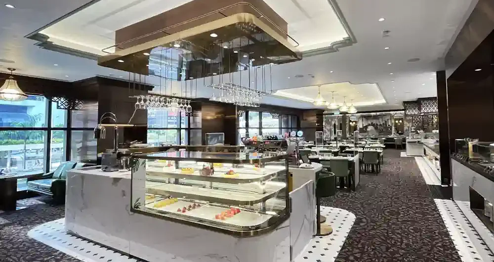 熱菜區提供煎鴨肝薄多士、鐵板燒虎蝦、鮑汁燴花膠、蠔皇扣鮑魚、清蒸星斑、片皮鵝、黃金焗蠔、芝士蘑菇焗蟹蓋、薑蔥炒龍蝦鉗、鴨肝醬燴鴨、松露燉牛肋條、美國特級有骨肉眼、燒羊脾、葡式燒乳豬和鮮蝦花膠雞白湯烏龍麵。